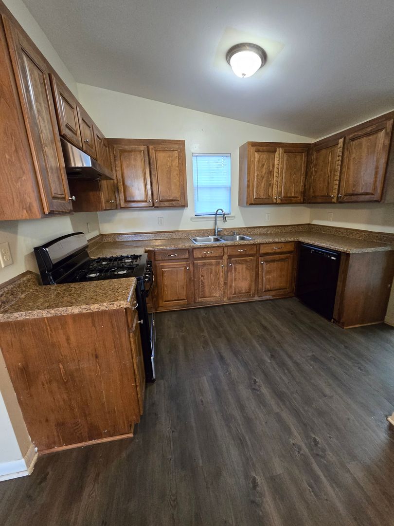 Welcome to this charming 3-bedroom, 1.5-bathroom home located in the Shady Grove neighborhood of Bossier City. The home features plank wood flooring throughout, adding a touch of elegance and easy maintenance. The kitchen is equipped with a dishwasher and a stove, making meal preparation a breeze. Additionally, washer/dryer hookups are available for your convenience. The property also boasts a large extra room, providing ample space for a variety of uses. Step outside to a spacious, fenced-in backyard, offering a perfect setting for outdoor activities or simply enjoying the beauty of nature. To top it all off, covered parking is available, protecting your vehicle from the elements. This home truly offers a unique living experience in a great neighborhood.